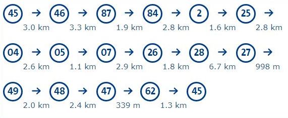 - Aantal kilometers: circa 45